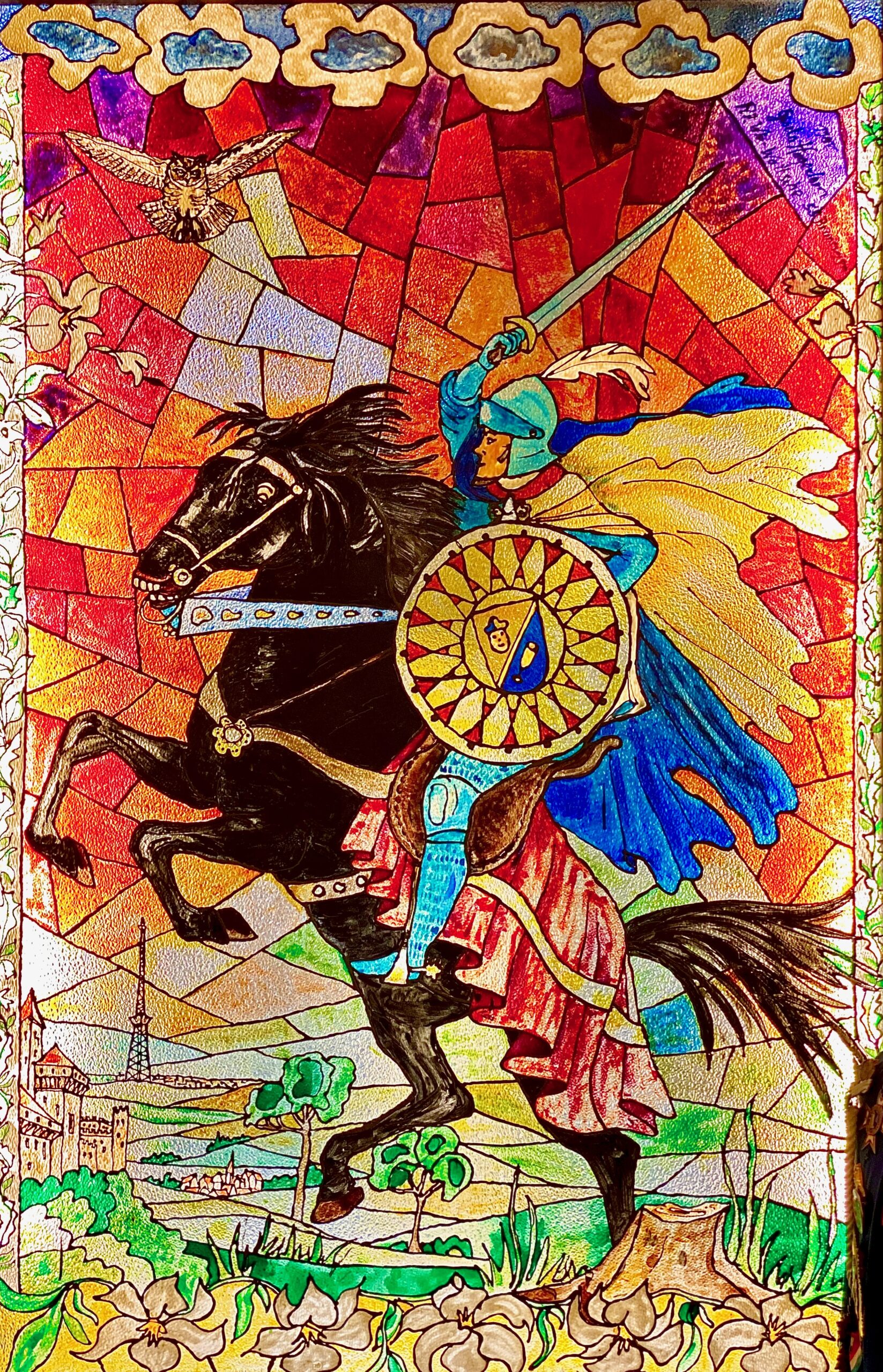 Dort hat er – wie könnte es anders sein – unter dem Schutz des UHU an der sogenannten Oppo-Tafel seinen angestammten Platz, ist es doch Aufgabe der Opposition, das Reychsgeschehen zu überwachen und mit tiefgründigem Humor auf so manchen Missstand hinzuweisen. Üblicherweise verbeugen sich Schlaraffen vor dem UHU, der in jeder Burg hoch im Gemäuer sitzt, um damit anzudeuten, dass sie die Hoheit des Symbols der Weisheit anerkennen und ehren. Es scheint kein Zufall zu sein, dass ein weiser Uhu über dieser Oppo-Tafel schwebt.